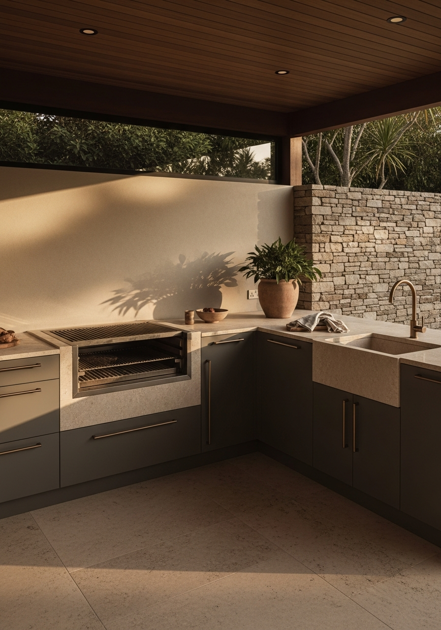 The tropical indoor outdoor kitchen thus becomes a specification of subtraction: no wood substrates to swell, no adhesives to fail, no seams to trap moisture. The kitchen surface extends from interior to exterior not as a design gesture but as a material fact. This is the architectural logic behind seamless kitchen transition—continuity achieved through manufacturing precision rather than installation compromise.