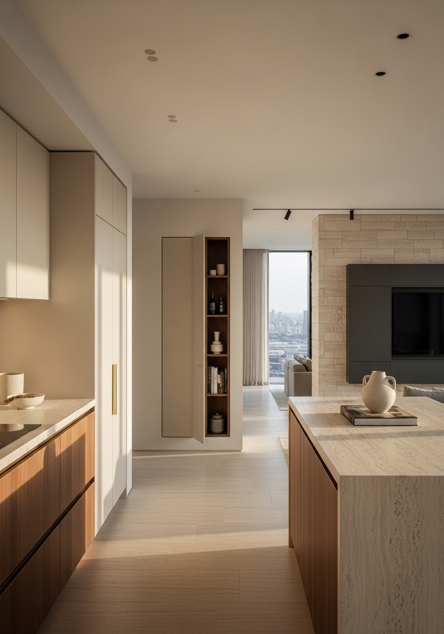 The penthouse presents a different but equally demanding scenario. Sealed, climate-controlled interiors with limited air exchange create what building scientists term 'sick building syndrome' conditions—spaces where off-gassing from adhesives and composite materials accumulates to measurable concentrations. Here, luxury stainless steel cabinetry functions as environmental infrastructure: a storage system that actively protects rather than compromises interior air quality. The specification shifts from 'what looks appropriate' to 'what performs under measurable stress.'