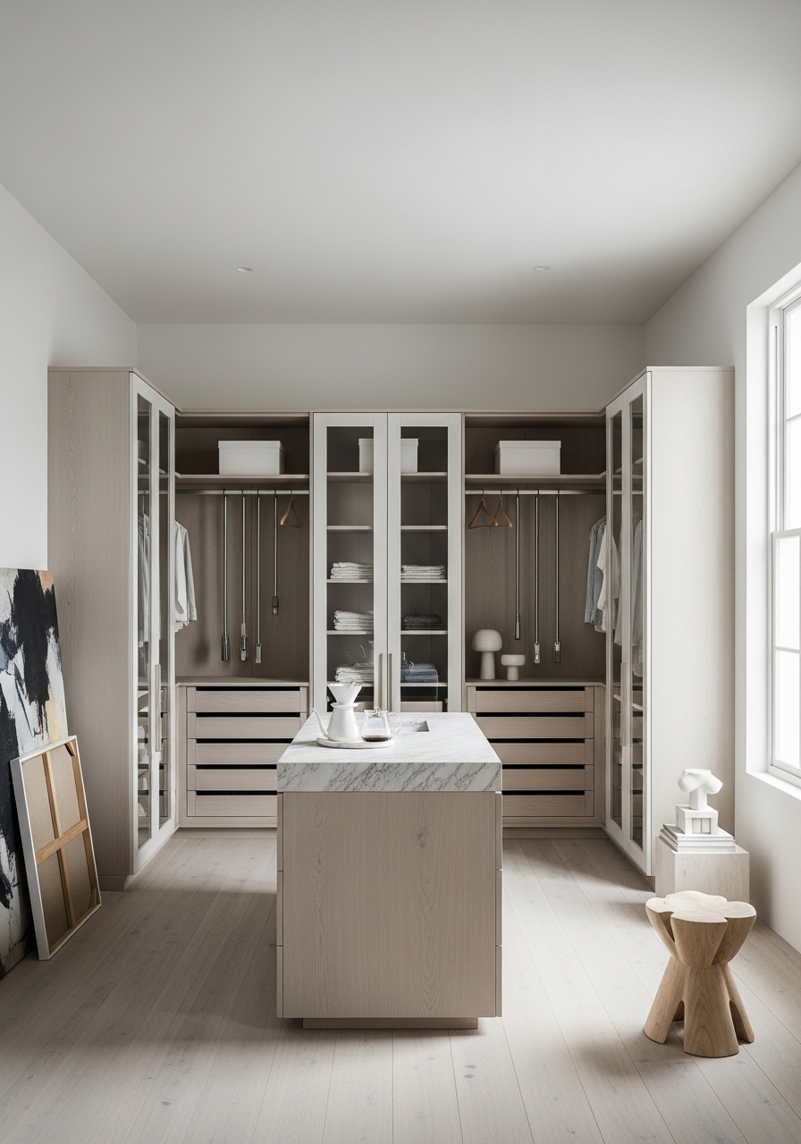 | Layout | Full-height wardrobe wall with integrated display niche and dressing transition |